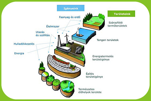 Minden emberi tevékenység használ földterületeket, vagy halászati területeket. Az ökológiai lábnyom ezeknek a területeknek az összessége és hat tényezőből tevődik össze:
